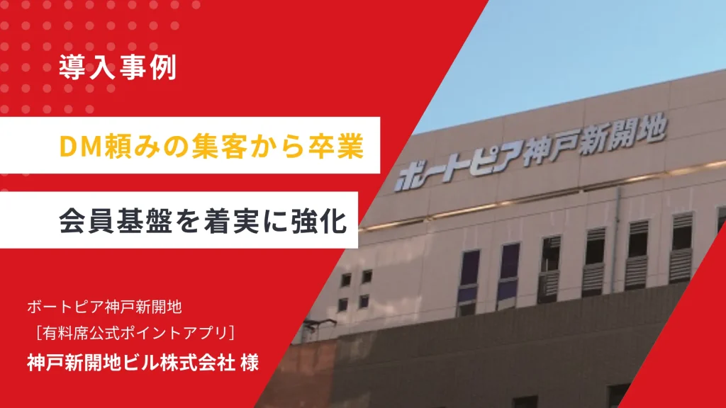 DM頼みの集客から卒業へ。ポイントカードを「アプリ化」した運用術|【神戸新開地ビル株式会社】様「長年、DMやポイントカードを中心に運用してきました。 ただ、“今届けたい”情報を確実に伝えられる仕組みが欠かせないと感じていたのです。」 —神戸新開地ビル株式…